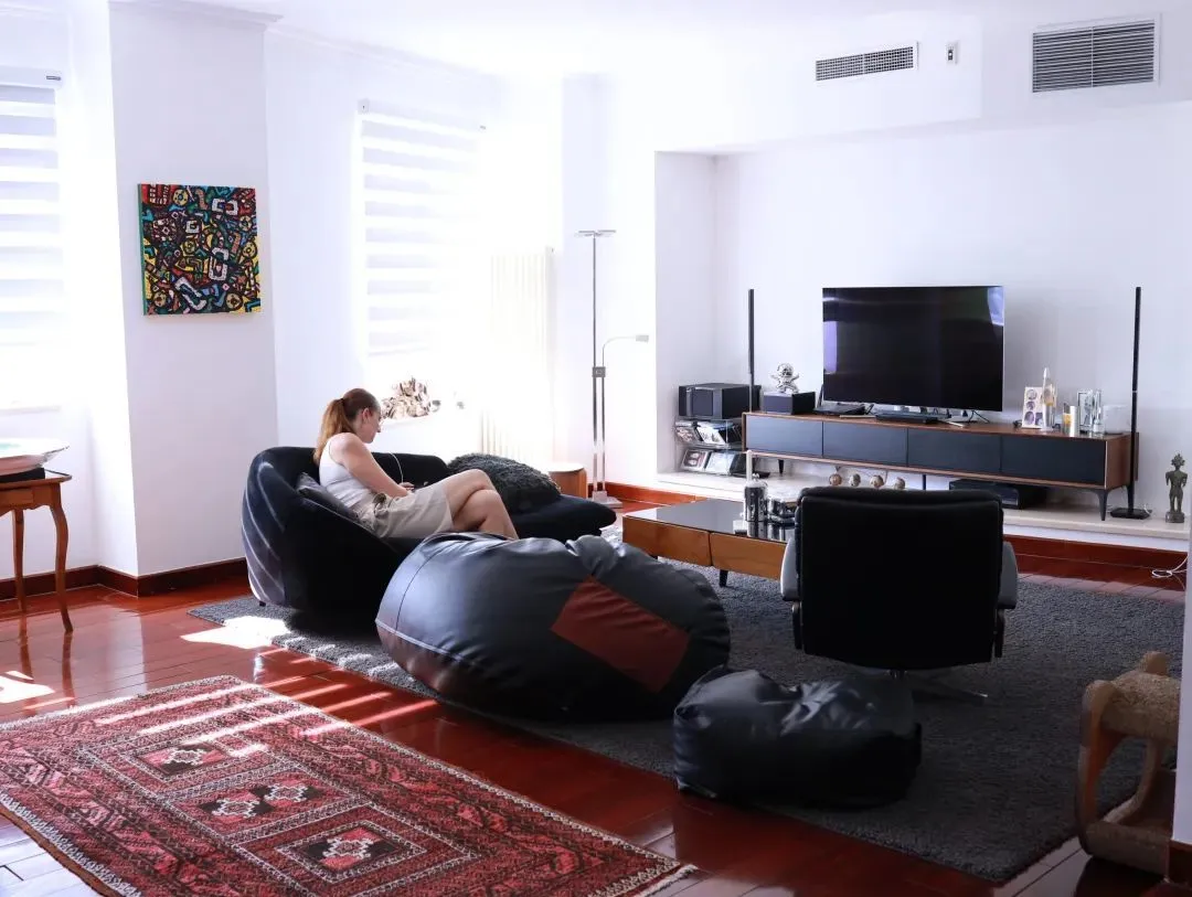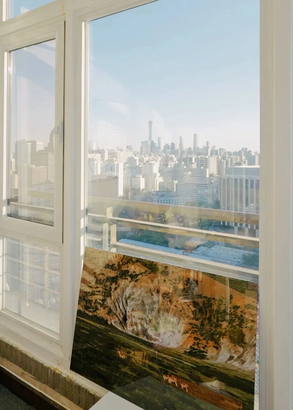 我很喜欢这个屋子阳台的设计,天气好的时候,既能看到国贸商圈,也能看到胡同、西山。晚上窗外满是灯火,很美。我喜欢冬天下午坐在这里,太阳晒得非常温暖。