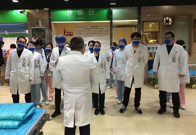 护理部、后勤部及接到支援任务的临床医师、护士迅速抵达急诊室,接受任务分配。放射科、检验科、超声室、介入室、手术室、ICU等部门接到指令后立即安排人员到位,在科室严阵以待。
