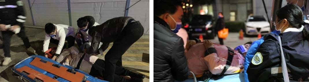 “紧急医学救援队员”10名成员接到创伤紫云平台出警通知,立即集结急诊室,携急救箱分批次赶往事故现场。