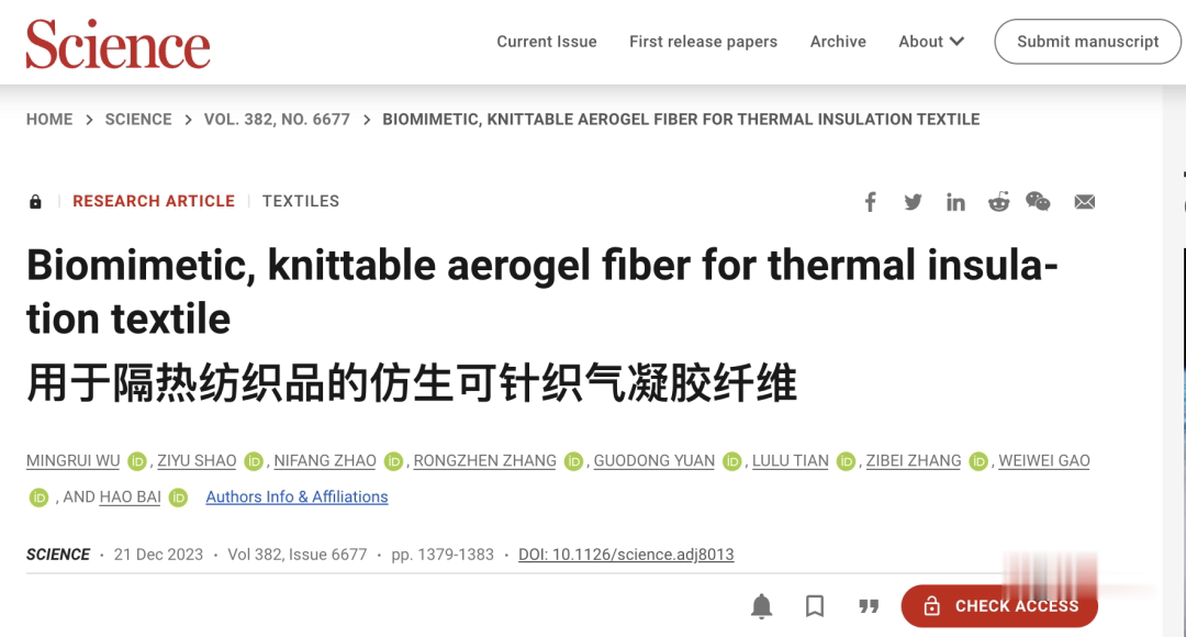 而浙大研制了一种新型材料,不仅保暖而且比羽绒服更轻薄耐用,论文已经登上了Science。