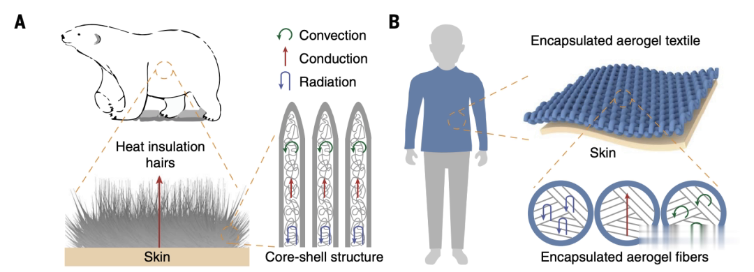 它模仿了北极熊毛的结构,仅用五分之一的厚度,就能达到和羽绒一样的保暖效果。