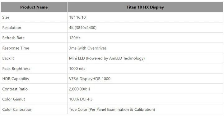 微星表示,Titan 18 HX上的4K/120Hz MiniLED显示屏采用友达AmLED技术,具有超亮背光、出色的HDR性能和足够宽的色域。该显示屏的峰值亮度超过1000尼特,是普通液晶显示屏的2.5倍,得益于其自适应控制技术,图像质量更清晰,光晕效应更少。惊人的峰值亮度还带来了卓越的HDR性能和2000000:1的对比度。Titan18已通过VESA DisplayHDR 1000认证,可确保在游戏或流媒体中获得身临其境的HDR体验。为了呈现尽可能多的色彩,Titan18的显示屏采用了100% DCI-P3色域,非常适合身临其境地游戏或娱乐。最后,得益于微星独有的“真彩”技术,Titan 18 HX上的每一块Mini LED面板在组装前都会经过严格检测,呈现最精准的色彩还原。