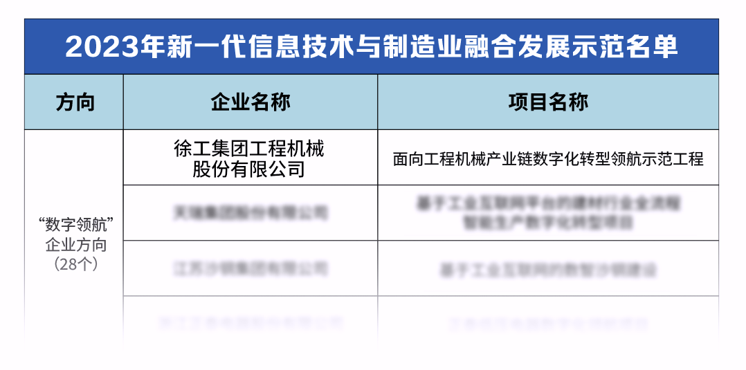 近日,工信部公示2023年新一代信息技术与制造业融合发展示范项目名单,徐工以“面向工程机械产业链数字化转型领航示范工程”入选28家“数字领航”企业,位居榜首,智改数转网联董事长“一号工程”启动以来,“国家级”荣誉再+1!