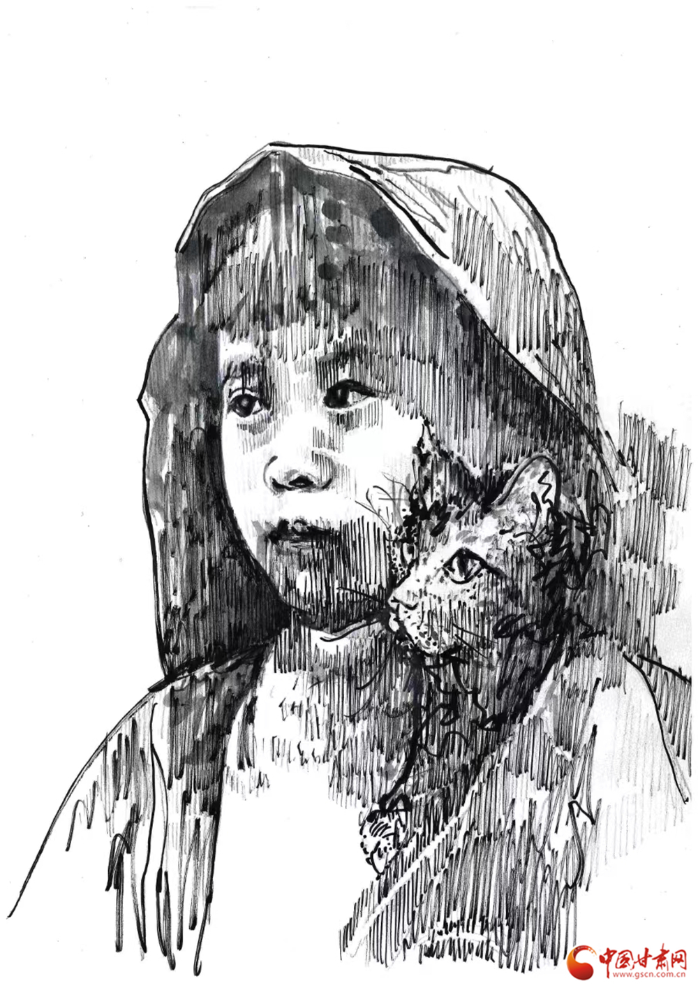 当央视记者在周家村报道灾情时,看到了穿着连衣帽的苏磊,而他的左脸颊旁,一只小猫咪探出了头。
