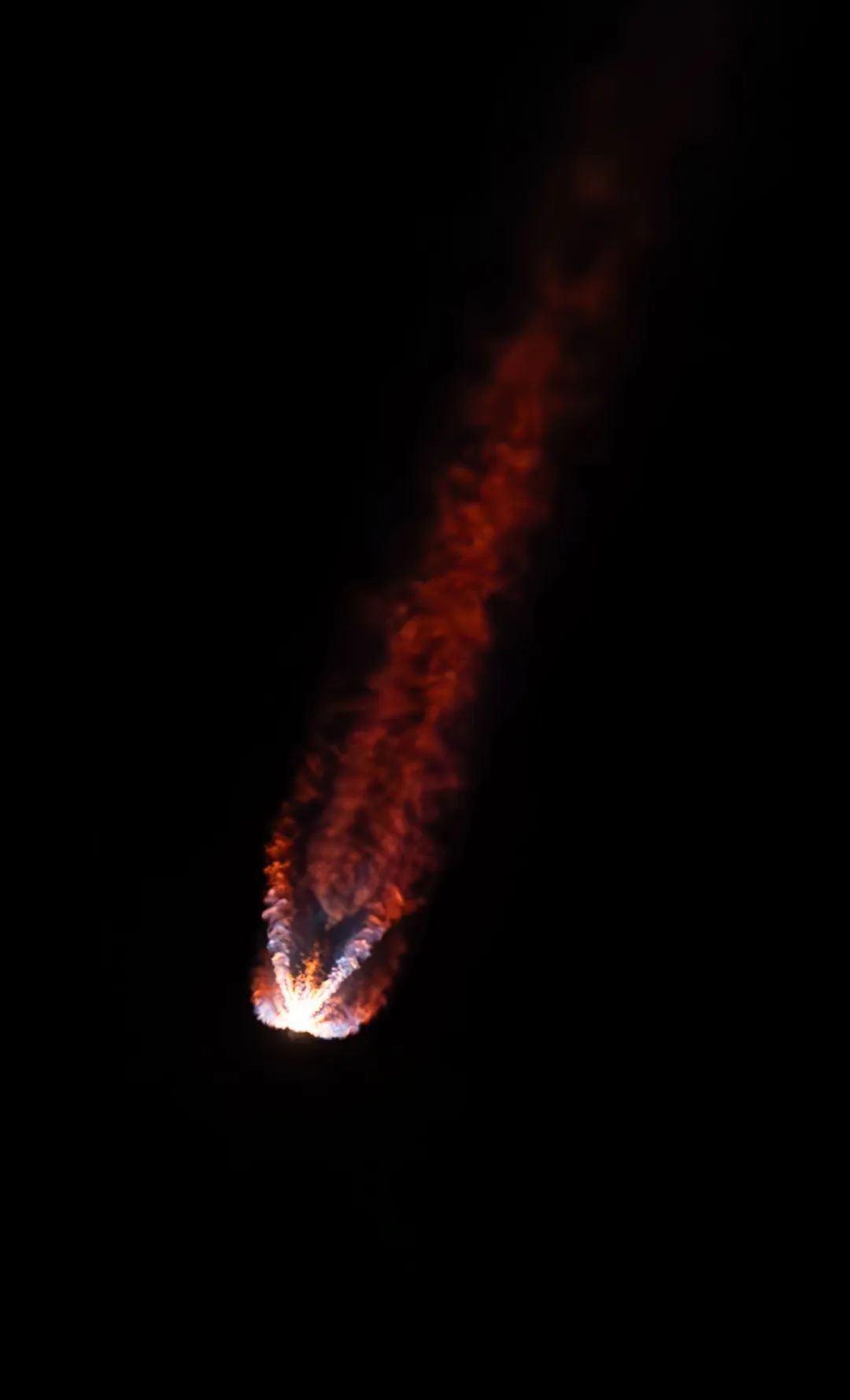 拍摄后期,火箭已经进入高速飞行状态,距离拍摄点非常遥远,在取景器中呈现为点状目标,得益于R5的对焦能力,仍然能清晰捕捉到画面。