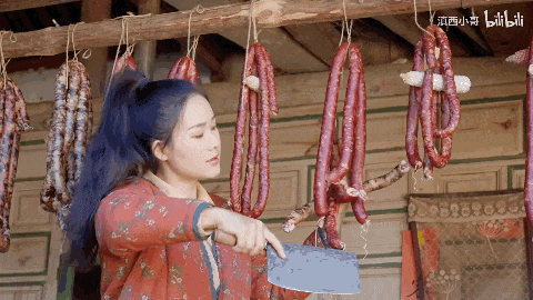 花样繁多的食材,经过冬日阳光的暴晒,成为房梁下通红的腊肠,