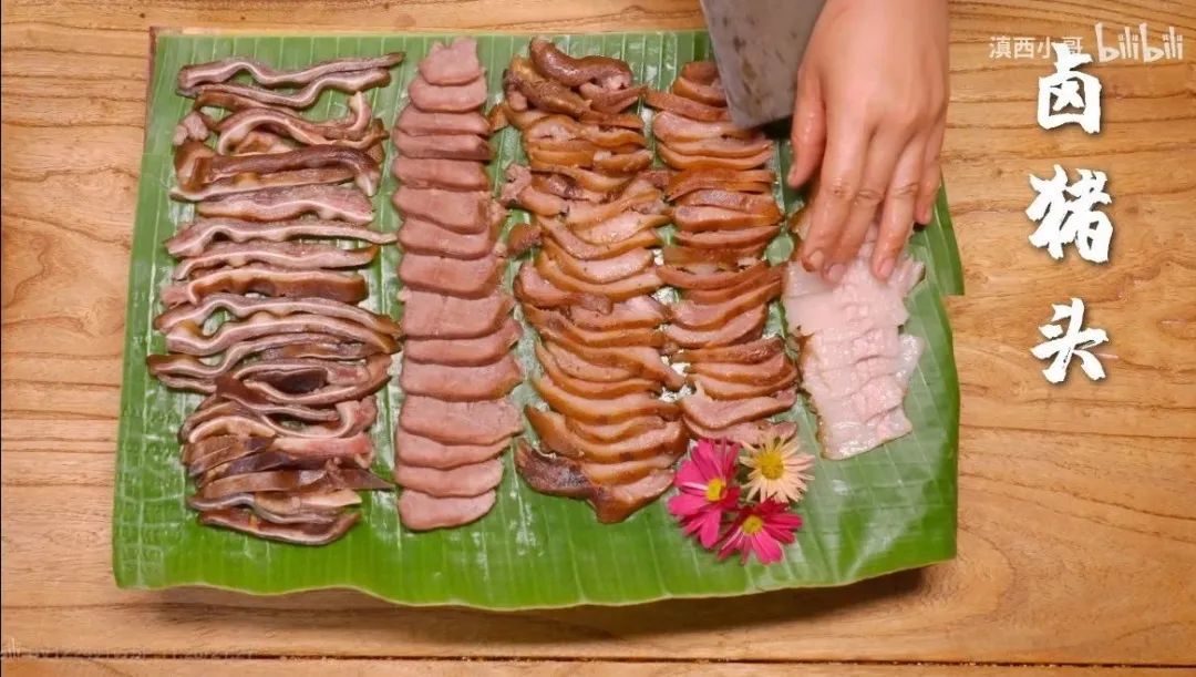 猪鼻子、猪舌头、猪耳朵、猪脸颊,凑成一道「卤猪头」拼盘。