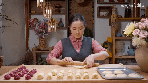 花瓣洗净、晾干,和猪油、蜂蜜、面粉拌匀,作馅料,