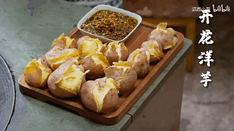 一个洋芋,十八般吃法,红红绿绿的云南特色蘸料,