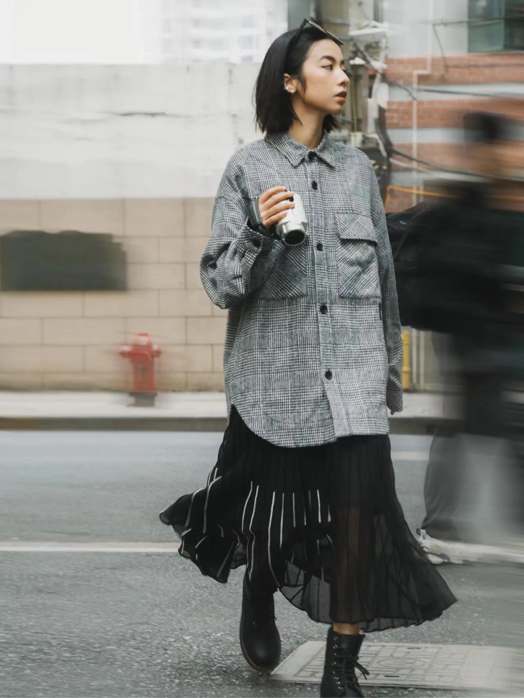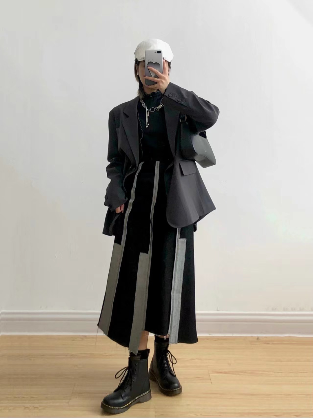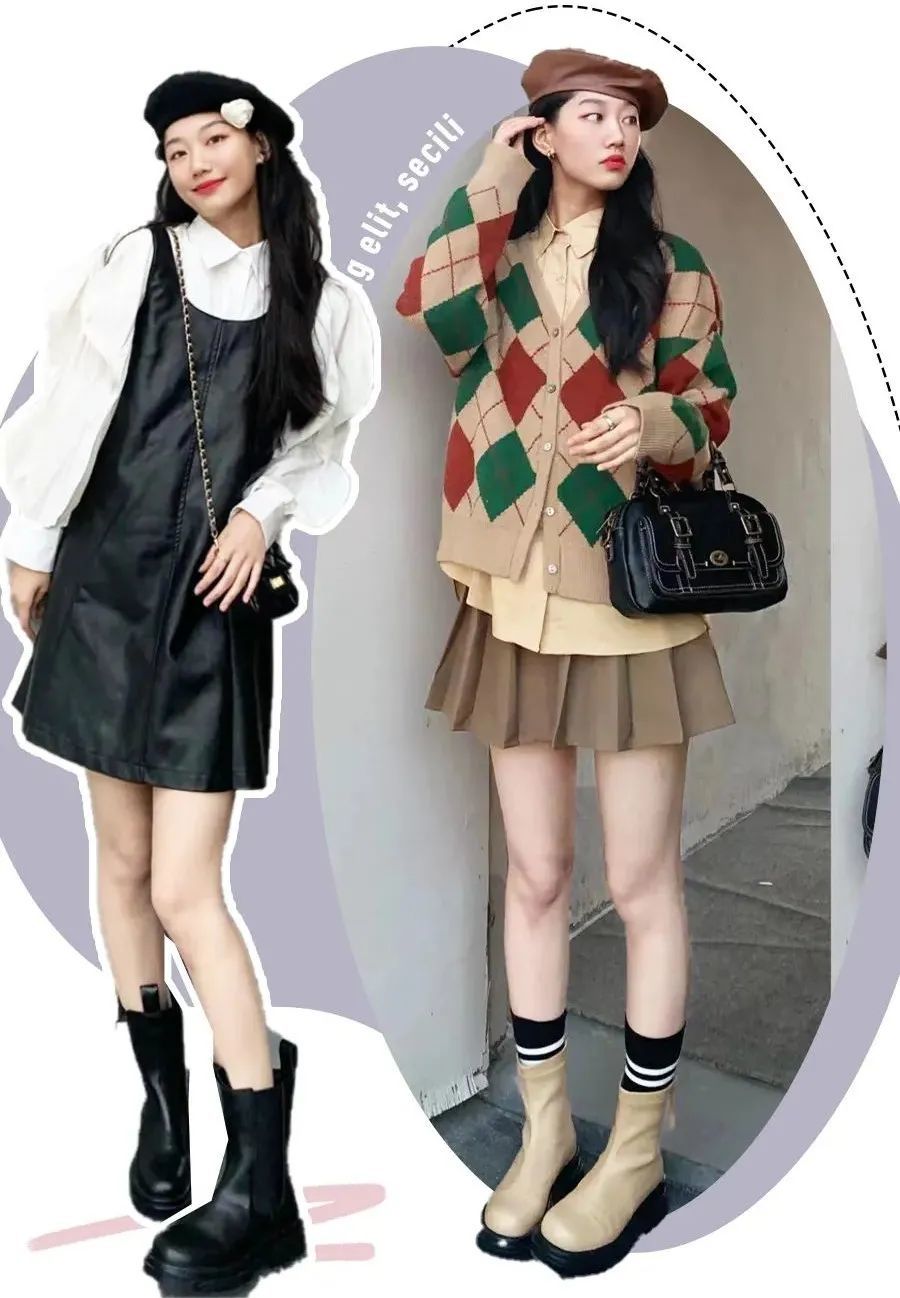 虽然裙子+靴子看似容易搭配,人人都会穿。