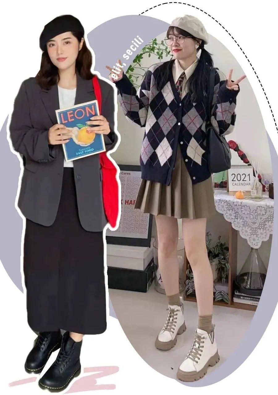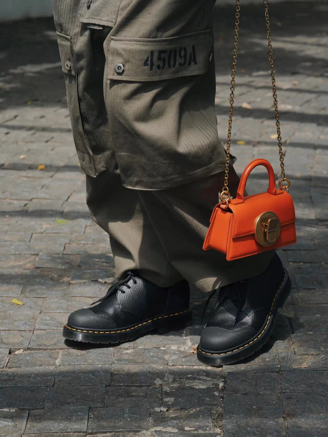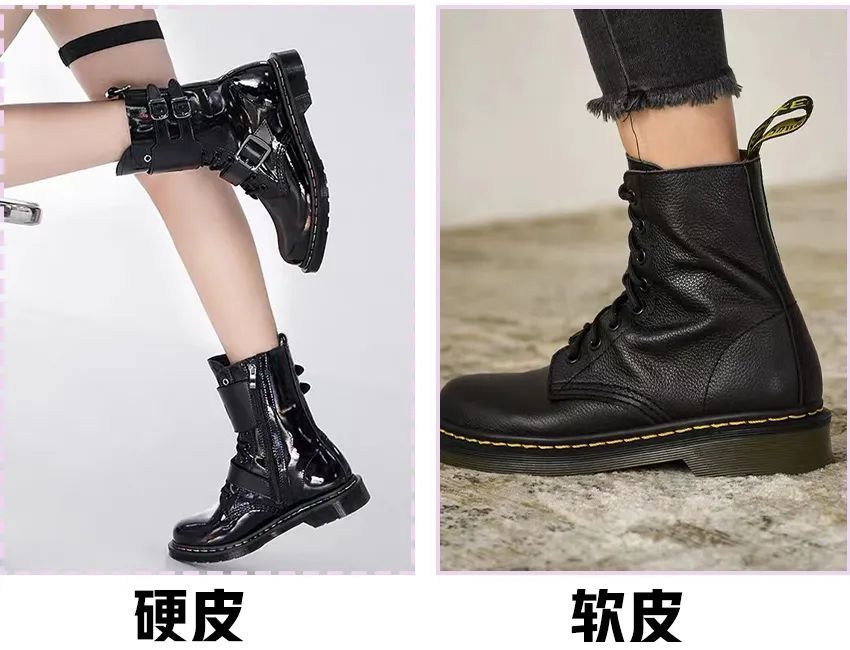 硬皮马丁靴的靴型更硬挺有型,穿起来更酷👇但相对来说舒适感比较差。