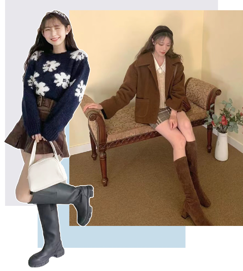 硬挺有型的鞋型,让脚蹬膝下靴的女孩,总是有一种姐姐气质,魅力无限!
