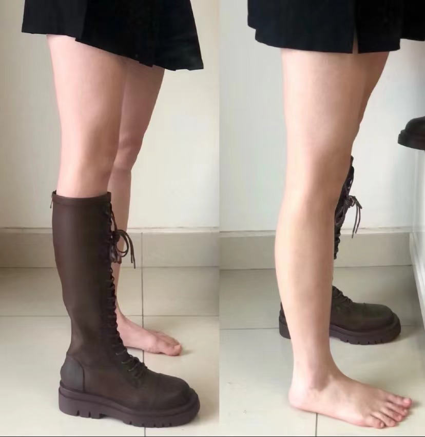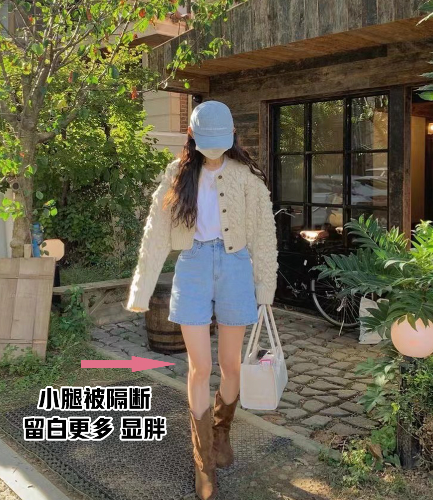 靴口高度刚好在小腿肚的位置,看起来小腿像被截断了。