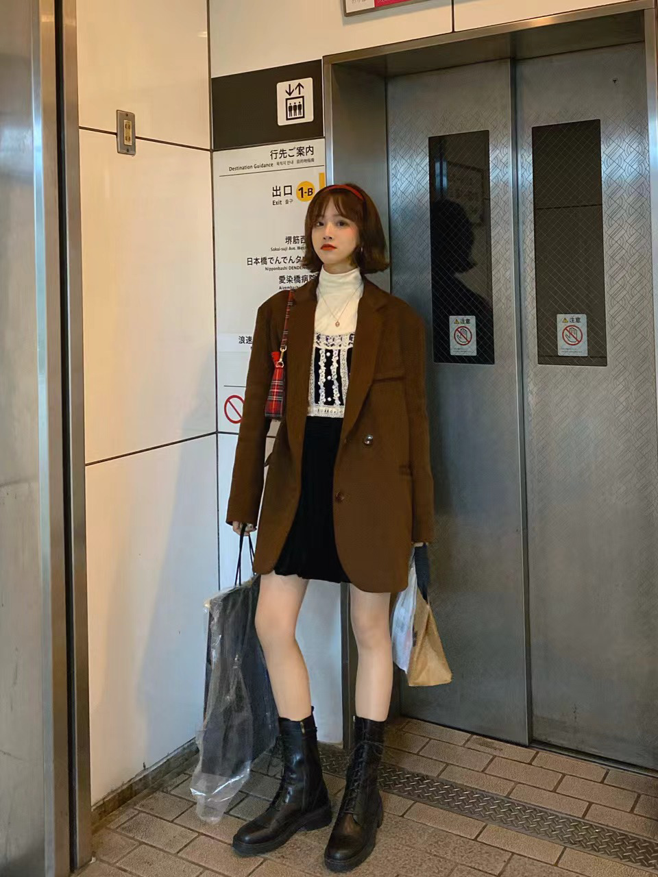 配上oversized大西装,谁看了不想喊一句学姐呢?