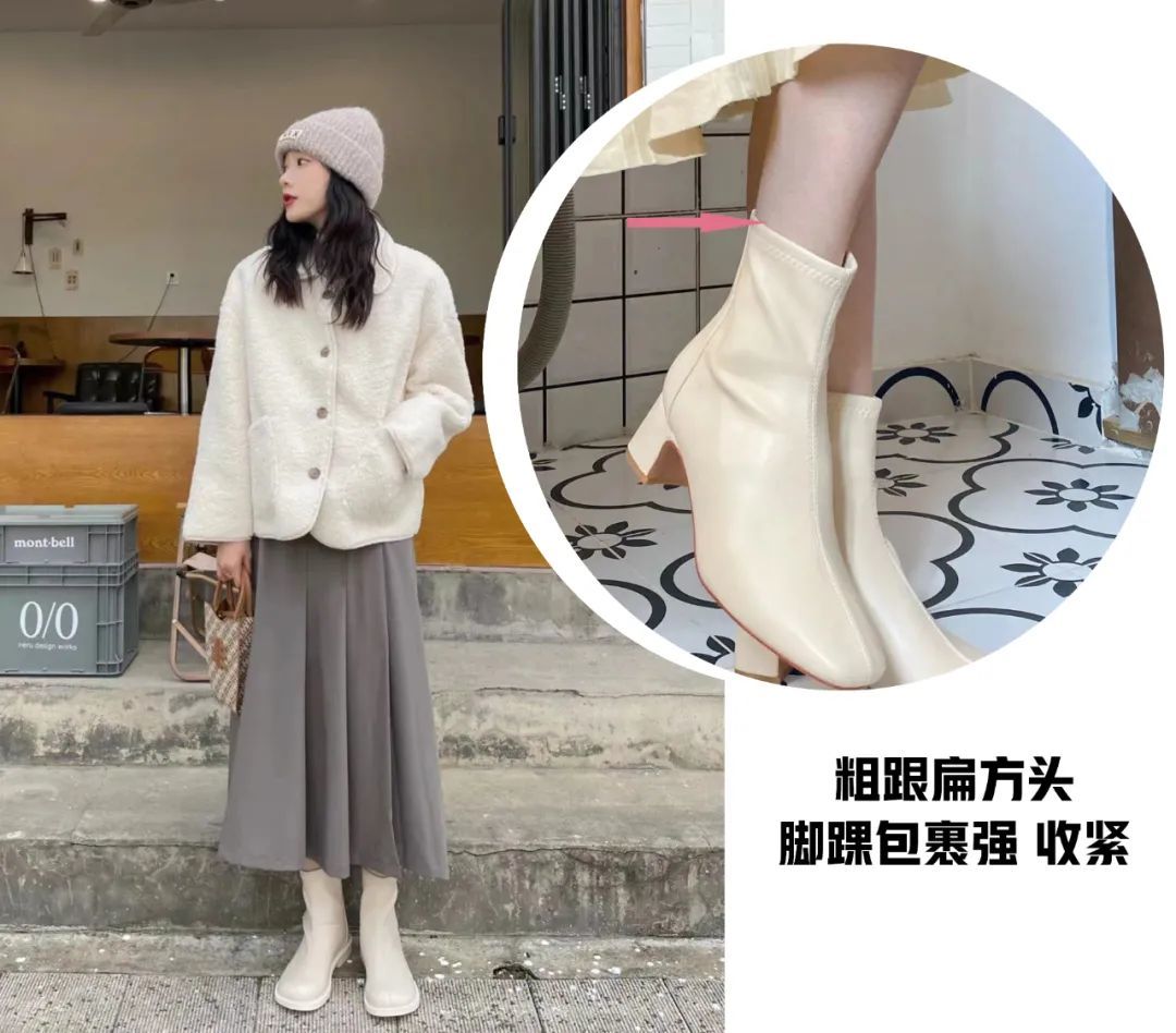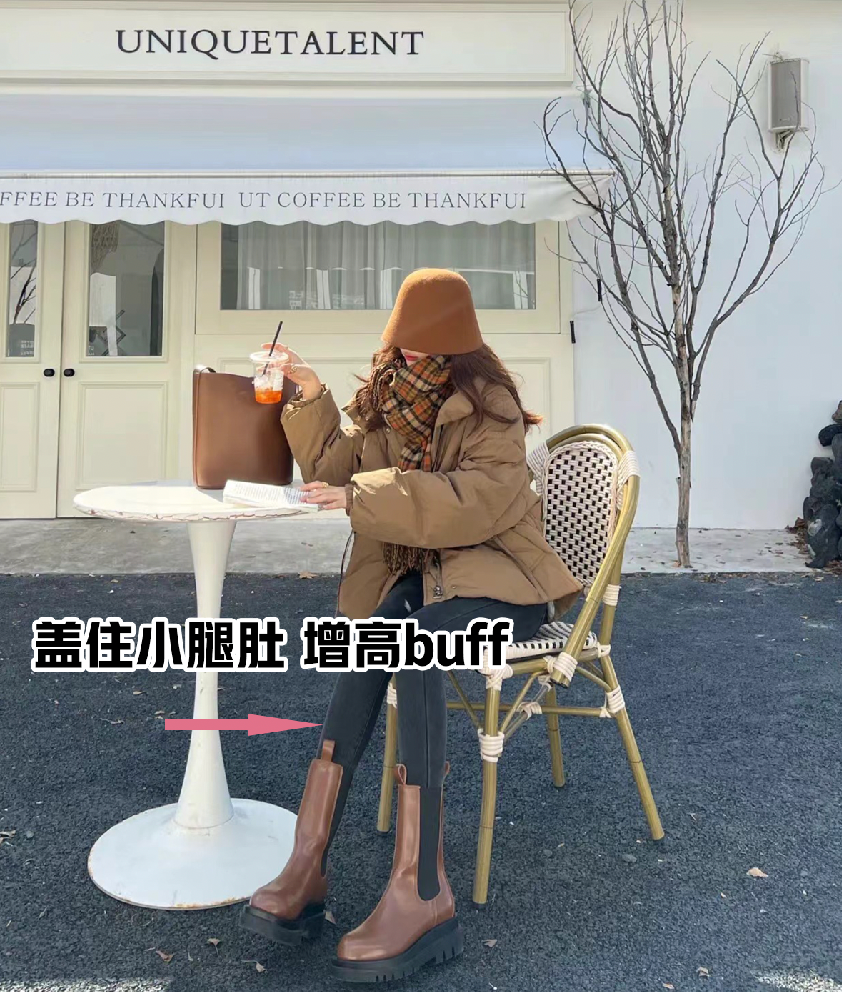 靴子一定要带跟才是灵魂!!靴跟的粗细也是影响我们腿粗细的关键。