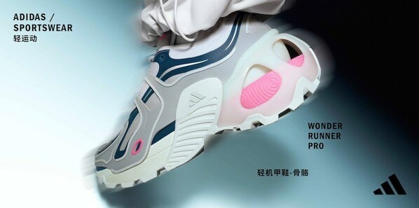 adidas Sportswear 「轻机甲鞋」将自然轻户外与都市机能风巧妙融合,为消费者带来与众不同的穿搭选择。系列主推三款轻机甲鞋设计,WONDER RUNNER「轻机甲鞋-岩石」融合了大自然山川岩石的奇观,将自然元素融入初见未来机甲宇宙。