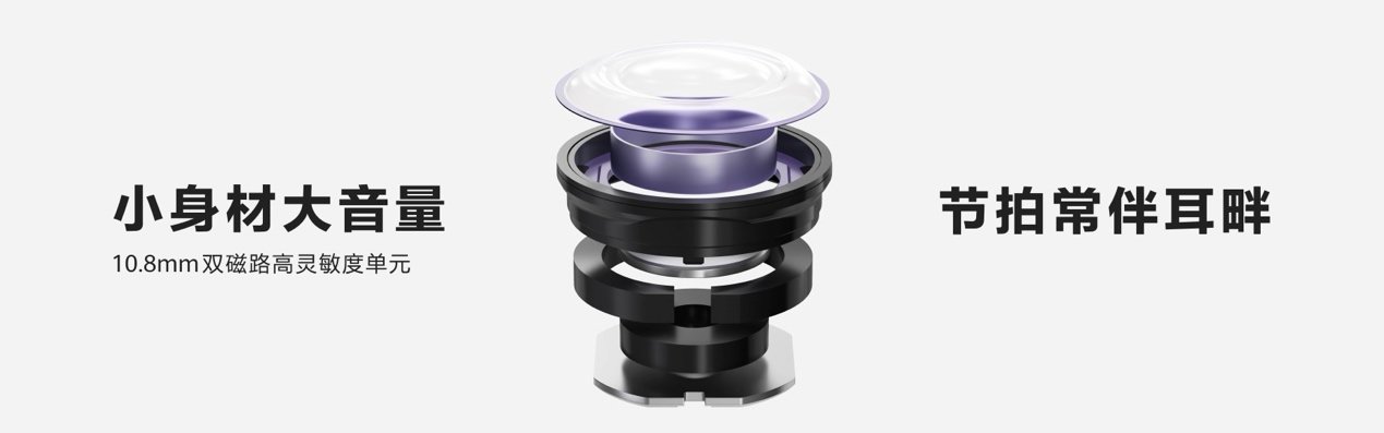 音质上,华为FreeClip耳夹耳机搭载 10.8mm 的双磁高灵敏度单元,由外圈和内圈环装磁体组成,超大磁通量为振膜带来超强驱动力,简单来说就是聆听歌曲时会更加震撼。同时,耳机还有双后泄孔架构,让更多的空气进入到喇叭模组内,减少振膜震动的阻碍,让音乐自带 “空间音频”,临场感满满。