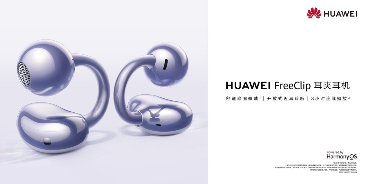 12 月 26 日,在问界 M9 及华为冬季全场景发布会上,华为FreeClip耳夹耳机也正式在国内发布。作为华为首款开放式耳机,华为FreeClip耳夹耳机拥有创新的外观设计,还有各种 “黑科技” 加持,实现了科技与时尚的完美融合。