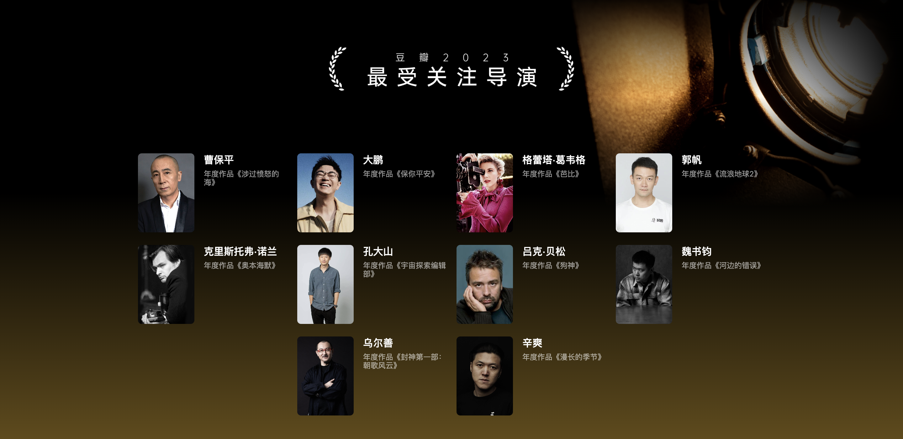 12月26日,豆瓣发布2023年度电影榜单,这是豆瓣年度电影榜单连续发布的第十年。《流浪地球2》斩获“评分最高华语电影”榜首,《奥本海默》获得“评分最高外语电影”,《漫长的季节》以豆瓣评分9.4的高分成为“评分最高华语剧集”TOP1;刘德华、范伟、朱一龙、于适等十位演员获得“最受关注演员”殊荣。郭帆、乌尔善、辛爽、诺兰等十位导演获选“2023最受关注导演”。