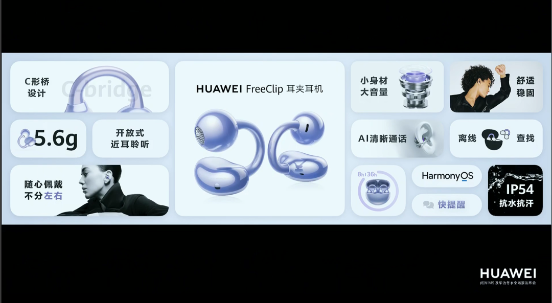 除了 nova 系列,还有一款之前海外已发布的 FreeClip 耳夹耳机,采用 C 形桥设计,售价 1299 元。
