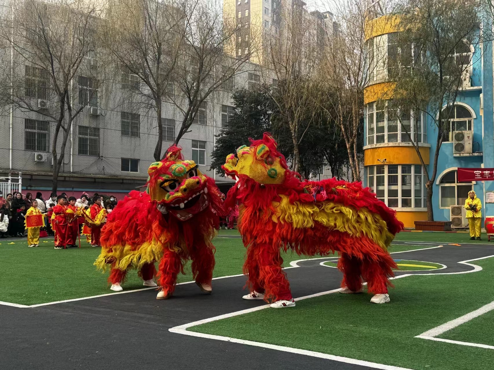 抬花轿、毛驴、媒婆,喜庆的造型、夸张的动作,在老师的表演下引来娃娃们捧腹大笑;一张红纸,在传承人的的剪刀下,变成了一幅精致的剪纸作品;两只可爱的狮子,时而调皮,时而腾空,而是撒娇卖萌,引来孩子们争相拍照合影……现场浓浓的“非遗味”,令人叹为观止,让娃娃们大开眼界。