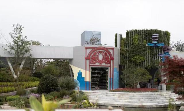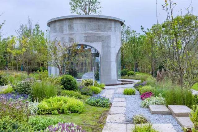 ——工艺做旧留白美。整个上海园有5个直径8米总高8米的大圆筒。清水混凝土寓意上海高楼林立的城市景象;而做旧工艺就是钢筋裸露,形成大小不一、“破旧”的混凝土洞口,呼唤着城市在大拆大建以后存量建筑的更新和优化。在深化设计中,结合中间种植的乔木和花境及灯光装置等,成为别具一格的景观点,在留白中远程穿透。