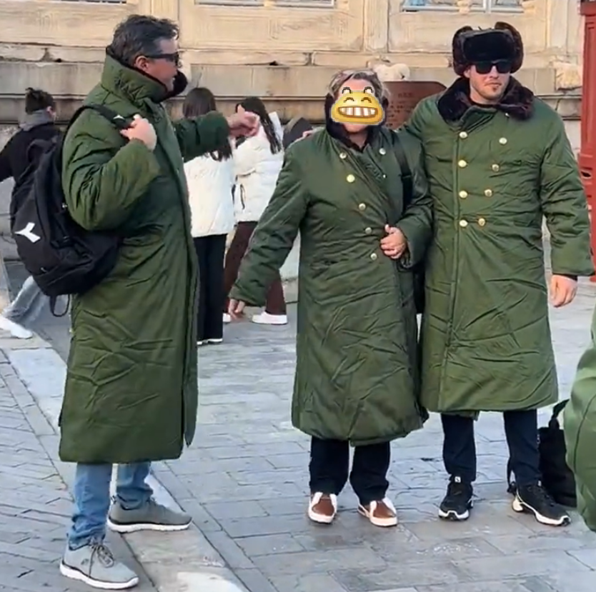 这不,北京天坛拍照的外国人都一身军大衣了。