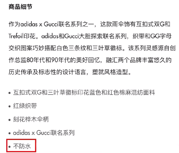 还有GUCCI和阿迪达斯联名的不防水“雨伞”,一把1.1万,真正的只可远观而不可亵玩。