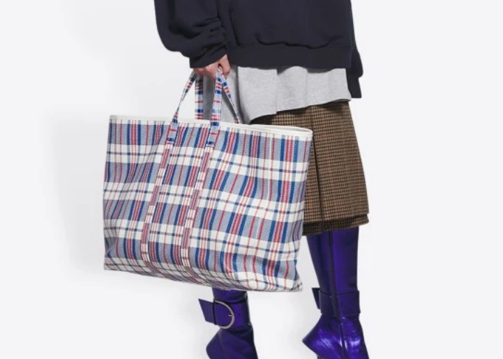 时隔多年后,巴黎世家也难以抗拒“编织袋”的美,2021年冬季推出100%小牛皮质地的手提包,搭配经典的红白蓝,售价1.3万人民币。
