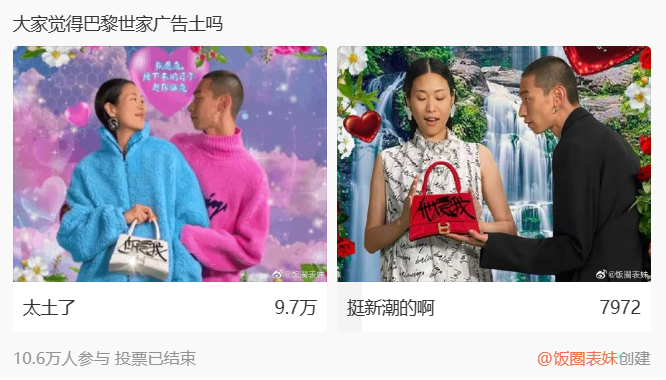 不知道让爸爸妈妈再选,还会不会钟意。但微博上一组超10万人的投票,9.7万人发出了心声——“太土了!”三个字直截了当。