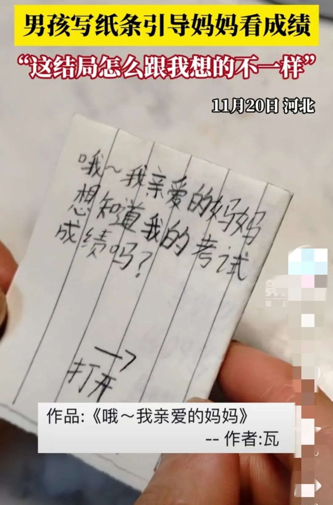 最近,河北一个小男孩写给妈妈的小纸条火了。