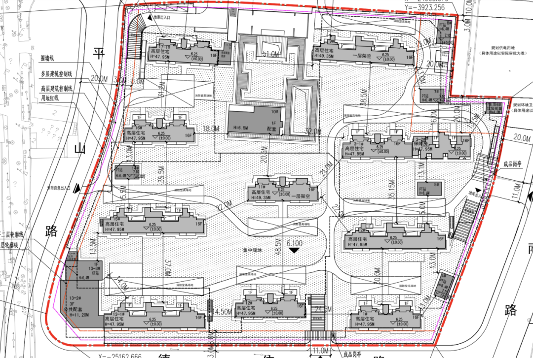 拟建设10幢总高16层住宅(含1幢保障房),2幢配套用房,以及PT、KT站等建筑,其中9#、11#,一层架空。