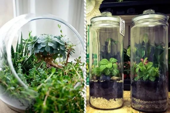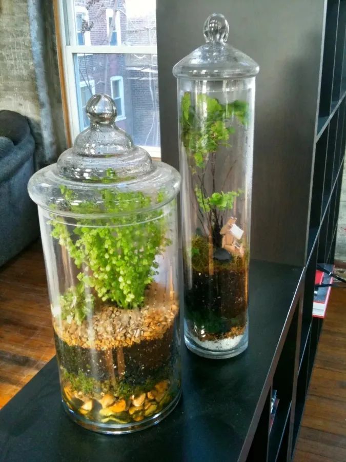 在微型的玻璃容器里可以布置各种不同的植物。那你知道这些植物如何在这些透明的玻璃容器里生长了吗?
