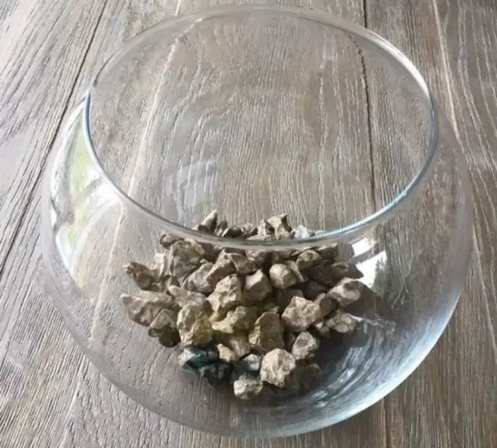 如果没有合适的排水层,一旦浇水多一点,就会导致土壤一直湿润,植物的根容易烂掉。玻璃容器越大,颗粒石就要越厚,通常是需要5厘米。