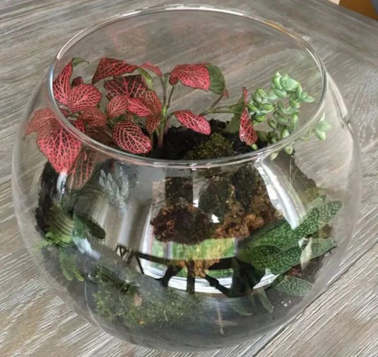 这些开放式的玻璃容器里,可以选择各种不同类型的植物,最适合布置的植物就包括网纹草、空气凤梨、仙人掌、冷水花、嫣红蔓、多肉植物、蕨类植物、观叶秋海棠和观赏苔藓等植物。