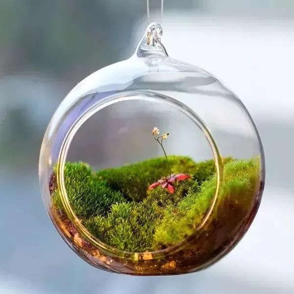 在这些封闭式的容器里,土壤会为植物提供养分,而植物的生长过程中,就会进行光合作用和呼吸作用。容器里的水分就会形成微型的循环,维持植物的生存,当然种在微型容器里的植物肯定就无法长得多快,甚至会停止生长。