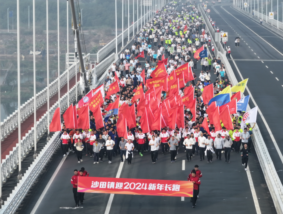 12月30日,在即将踏入2024年元旦之际,沙田镇迎2024新年长跑在沙田大桥鸣笛起跑。1300多名党员干部和各界群众,以运动的方式挥手告别2023年,开启充满希望的2024年新征程,展现出沙田干部群众奔跑追梦、奋发进取、团结拼搏的良好风貌。