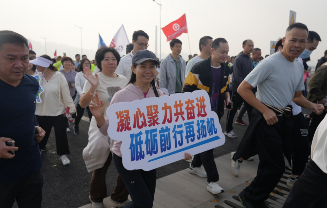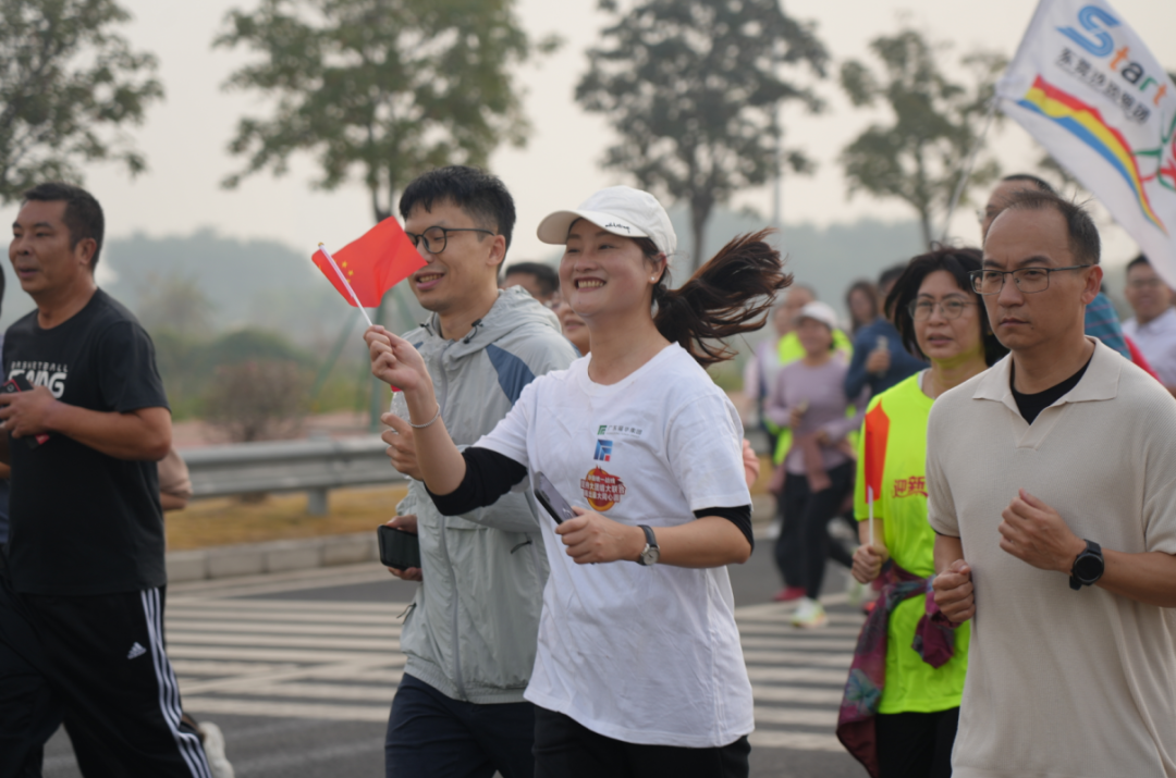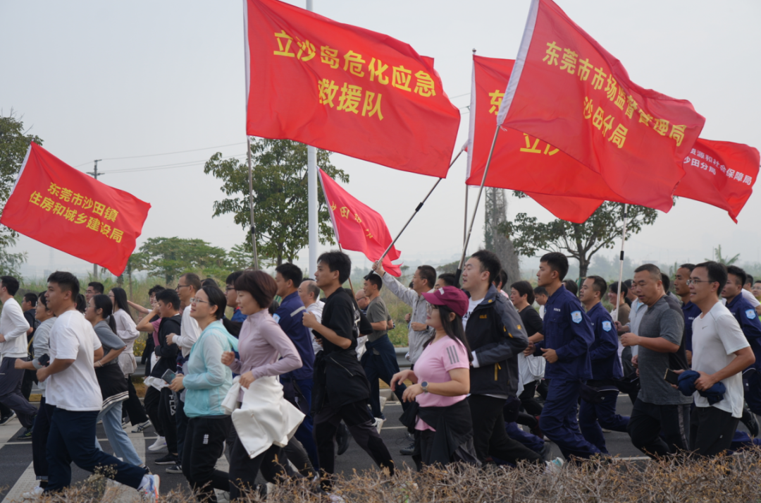 当天,沙田大桥两旁彩旗飘飘,音乐声欢快激昂,参加长跑的志愿者红旗队、公安联检消防、机关单位、各村(社区)“两委”成员、沙田商协会企业代表和市民群众代表共15个方阵热情挥舞着队旗,整装待发,到处都洋溢着新年喜庆活力的气氛。