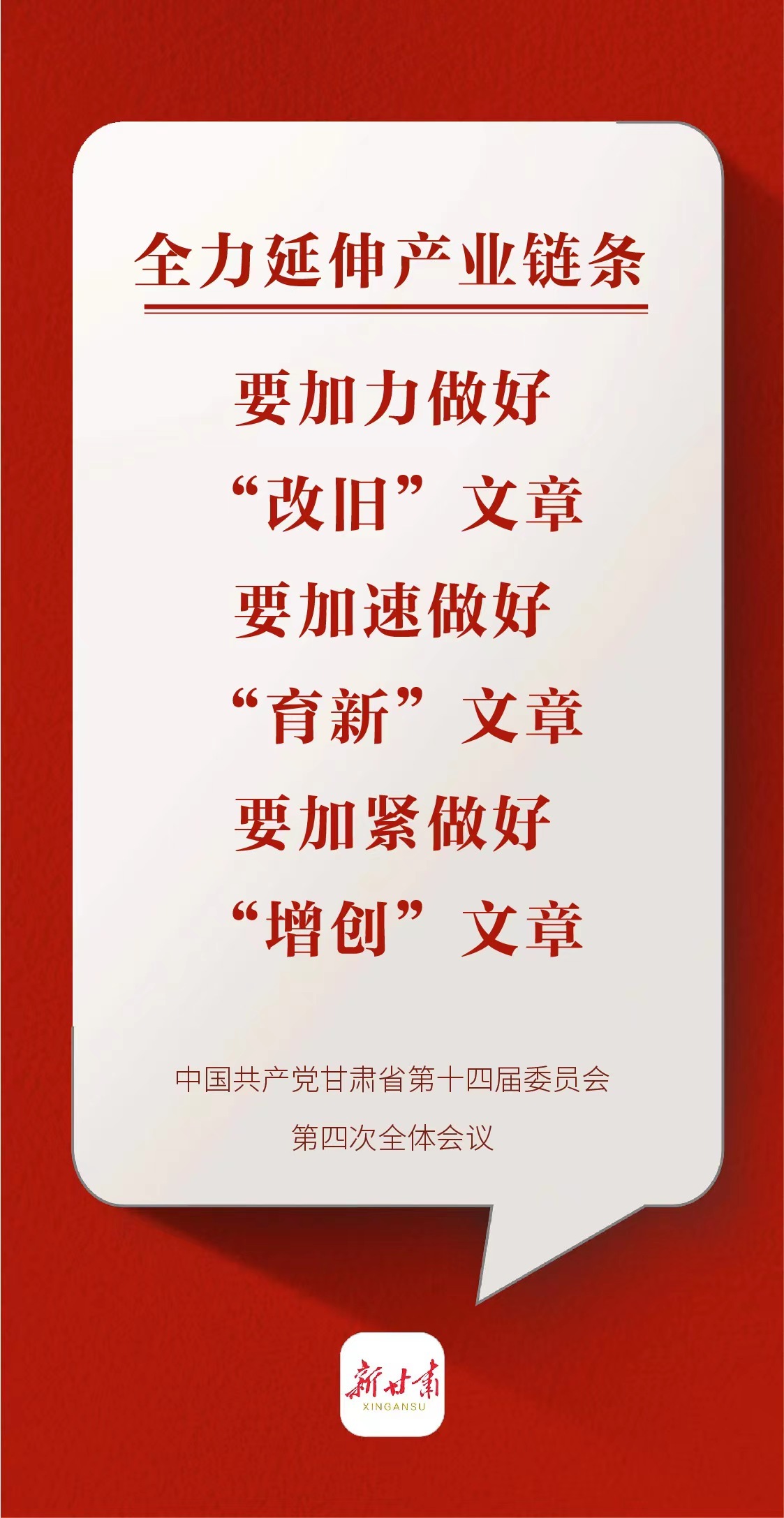 刚刚召开的省委十四届四次全会,审议通过了《中共甘肃省委关于深入推进新型工业化加快建设现代化产业体系的决定》,并对做好明年各项工作提出明确要求。全省上下要统一思想和行动,以更高站位、更宽视野、更大力度推进新型工业化、建设现代化产业体系,不断夯实中国式现代化甘肃实践的产业根基和技术支撑。