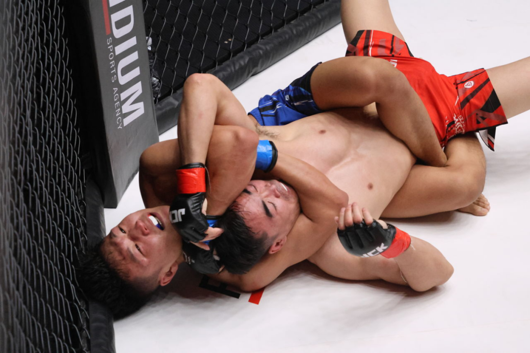 王奇在起身后想要发挥自己站立上的优势,不过很快又被带入地面,随后毕徳力雅便开始了长时间的上位压制。