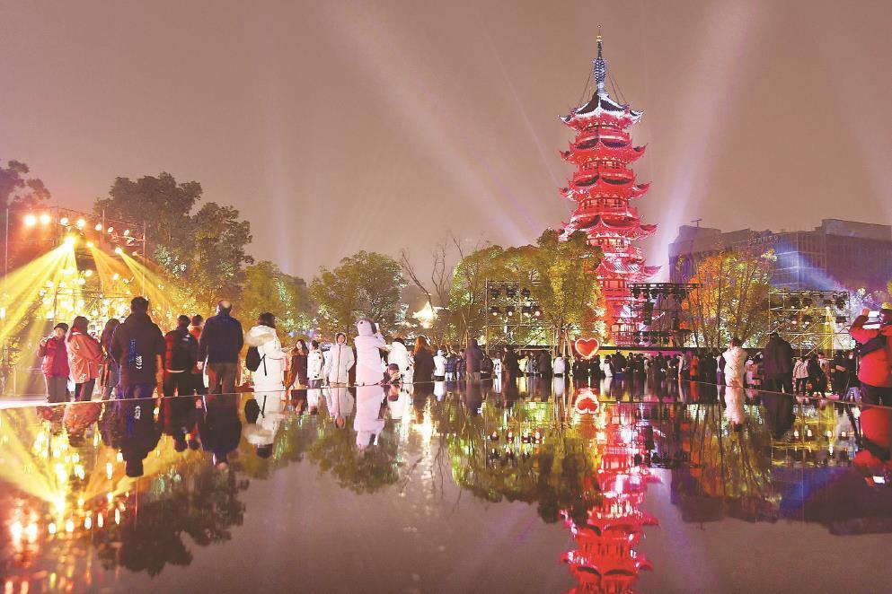 龙华塔光影秀呈现一场跨年视觉盛宴。本报记者 赵立荣摄