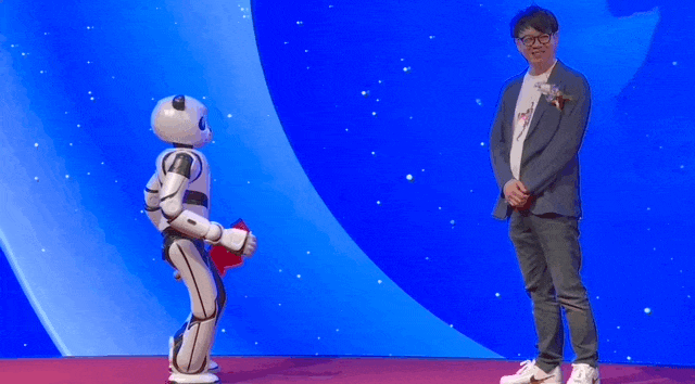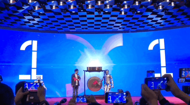 这架势,这阵仗吸引了无数关注,成为在场所有人类的焦点。现场,熊猫机器人优悠走上舞台,为优必选创始人、董事长兼CEO递上锣锤。