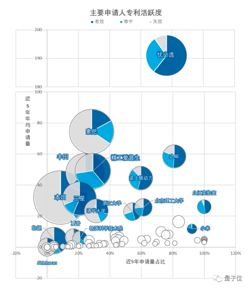 并且近五年始终处于高产出的活跃度中——年均申请专利数量接近200件,年均申请量占比将近80%,远远超过全球一些主流玩家。
