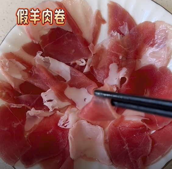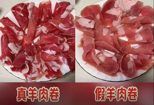 据了解,通常羊肉卷的价格是羊肉的1.5倍左右,所以过于便宜的羊肉卷就会有掺假的风险。除了价格,我们从肉的颜色、纹理上怎么来区别呢?为此,小编做了个真假羊肉卷的对比试验。