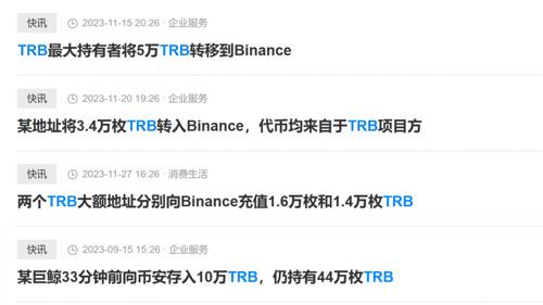 此前,据Spot On Chain监测,目前在流通的250万枚TRB中,约170万枚在交易所,66万枚TRB由20个鲸鱼(拥有大量加密货币的用户)持有。