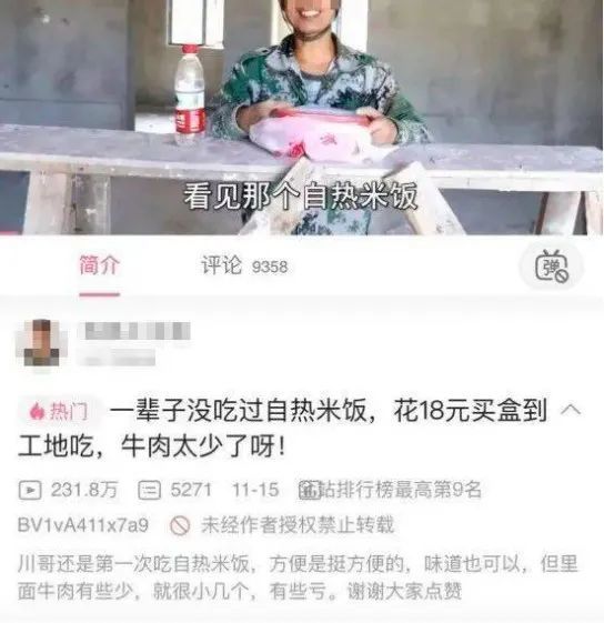 而一个从没吃过自热米饭的农民工,花18块钱买了一盒,就被嘲讽做作、卖惨。