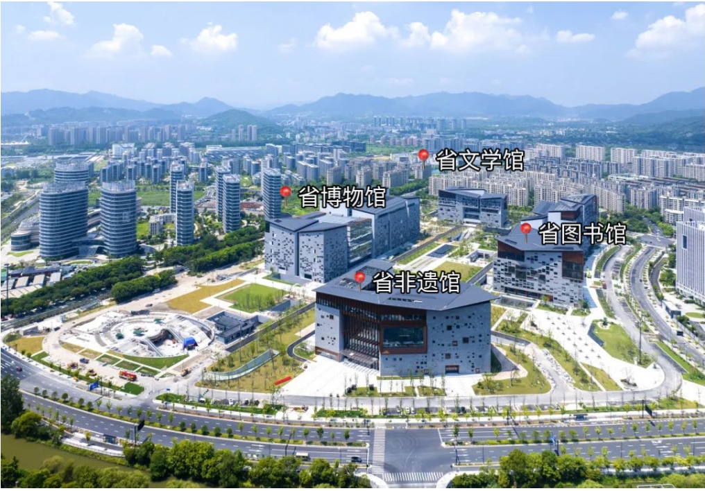 总投资32.4亿元的之江文化中心是目前全国体量最大的省级公共文化设施集聚群,由浙江省博物馆之江新馆、浙江图书馆之江新馆、浙江省非物质文化遗产馆、浙江文学馆以及配套的公共服务中心组成,是一处集自然、人文、艺术、生态于一体的现代复合型文化综合体。自8月底正式对外开放以来,成为市民、游客争相参观打卡的文化新地标。