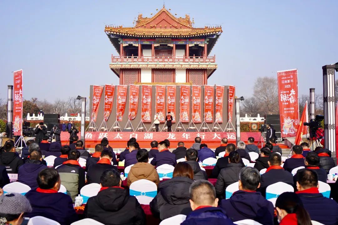 鱼跃太白湖,龙年行大运。1 月 1 日上午, 2024 好客山东文化济宁贺年会暨第九届太白湖捕鱼节启动仪式在太白湖景区举行。
