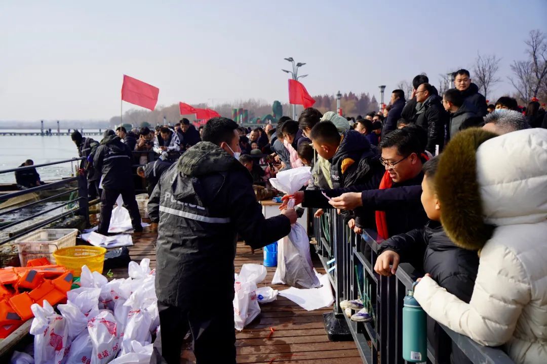 新年第一网鱼分别赠送给济宁市第一中学和太白湖新区石桥镇敬老院,预祝莘莘学子鱼跃龙门、金榜题名,祝愿老年朋友身体健康、吉庆有鱼。