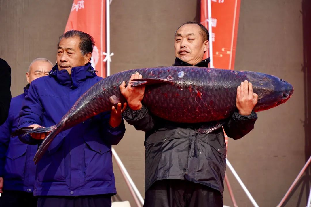 开幕式上,“鱼王”竞拍环节将活动现场气氛推向高潮。2024年“鱼王”重达103斤,引得各企业争相竞拍,最终大卫食品集团、九春里露营地以77.88万元拍得;湖上人家餐饮公司以39.8万元拍得第二条“福鱼”,重38.8斤;中科生泰以18.88万元拍得第三条“福鱼”,重16.8斤。